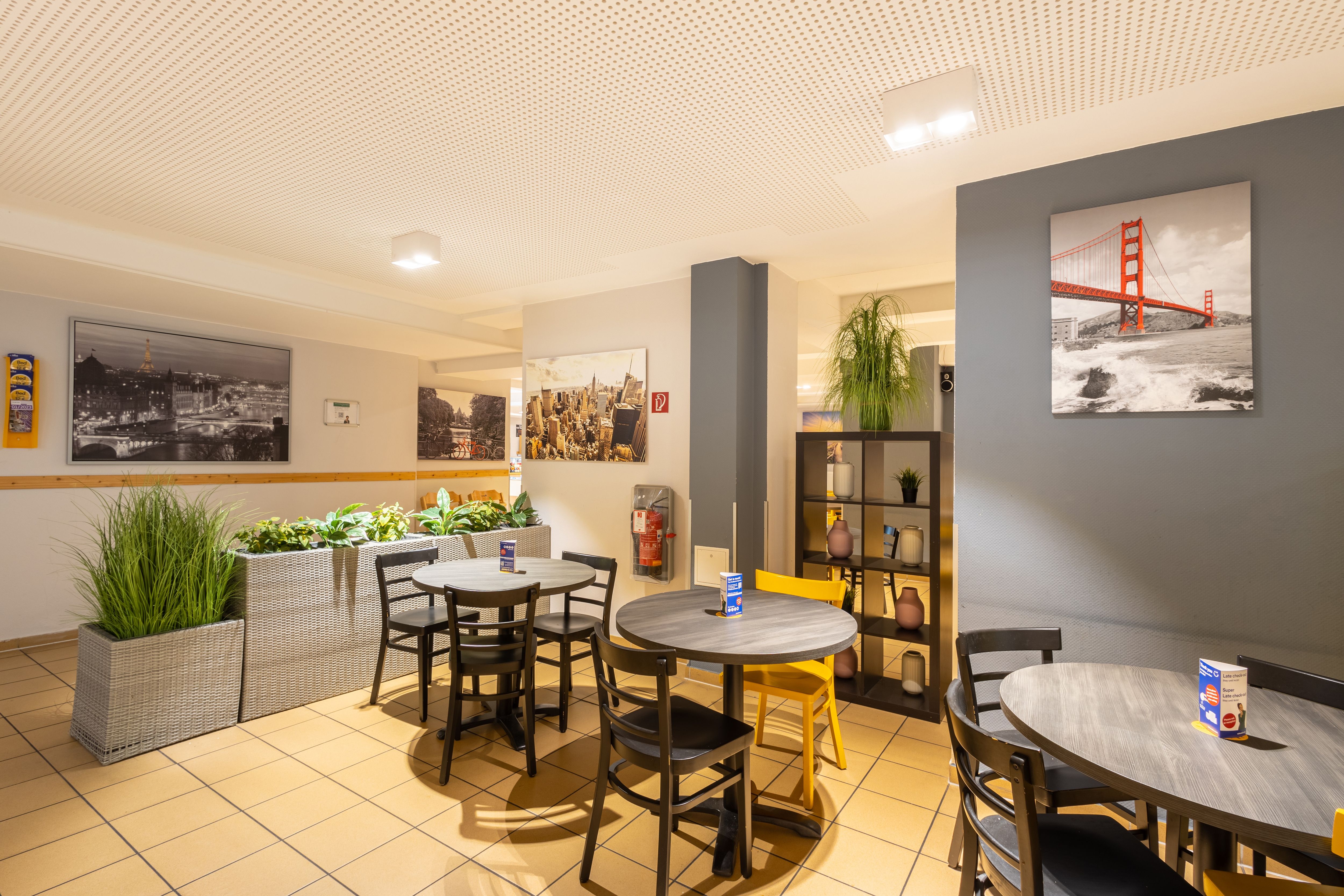 Neben den modern eingerichteten Zimmern bietet Ihnen das a&o Dortmund auch eine große und gemütliche Lobby in ausgefallenem Schachbrettmuster sowie eine gut bestückte Bar. Hier können Sie in entspannter Atmosphäre verweilen. Schließfächer und einen Gepäckraum gibt es für das Lagern Ihrer Wertsachen und Koffer.