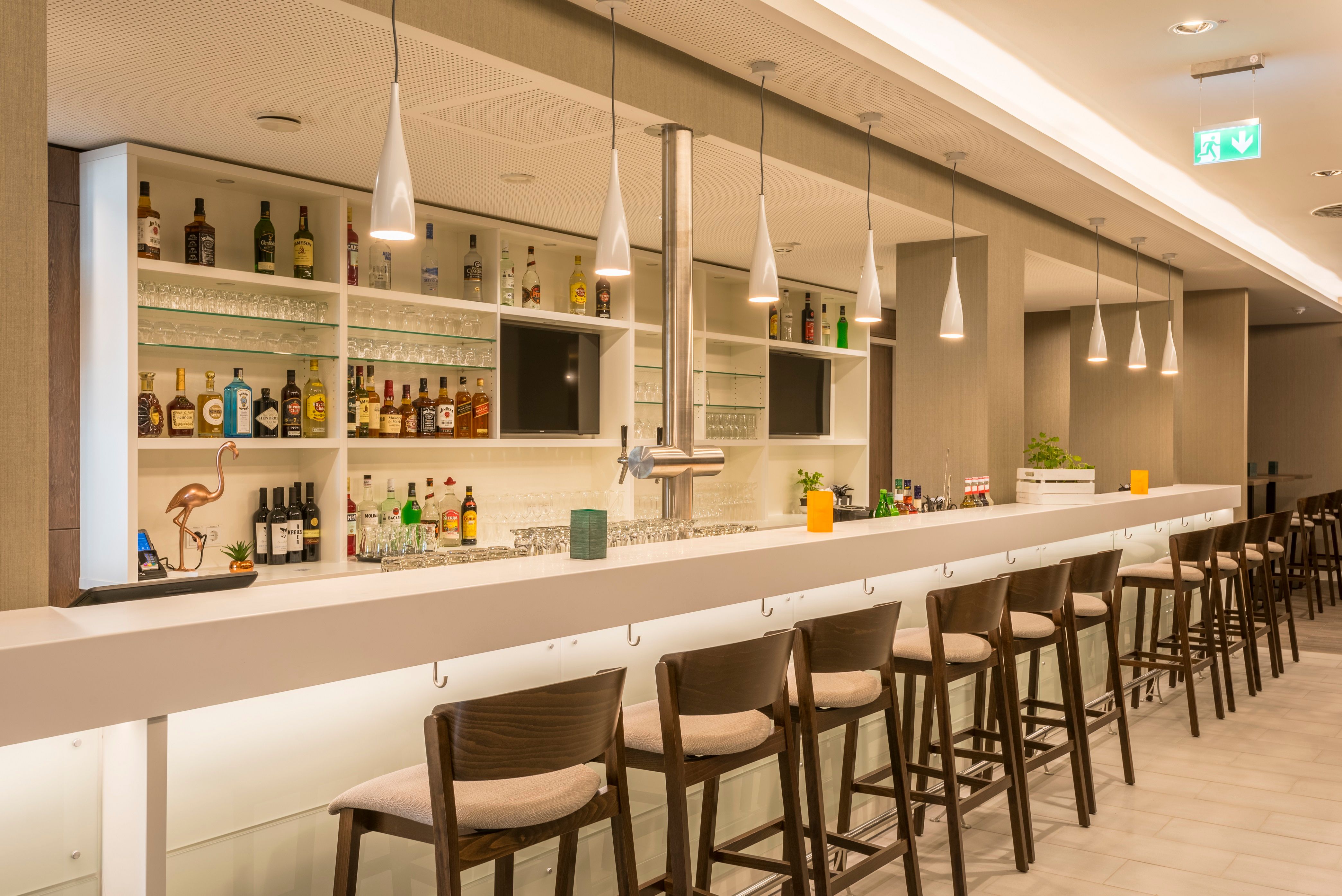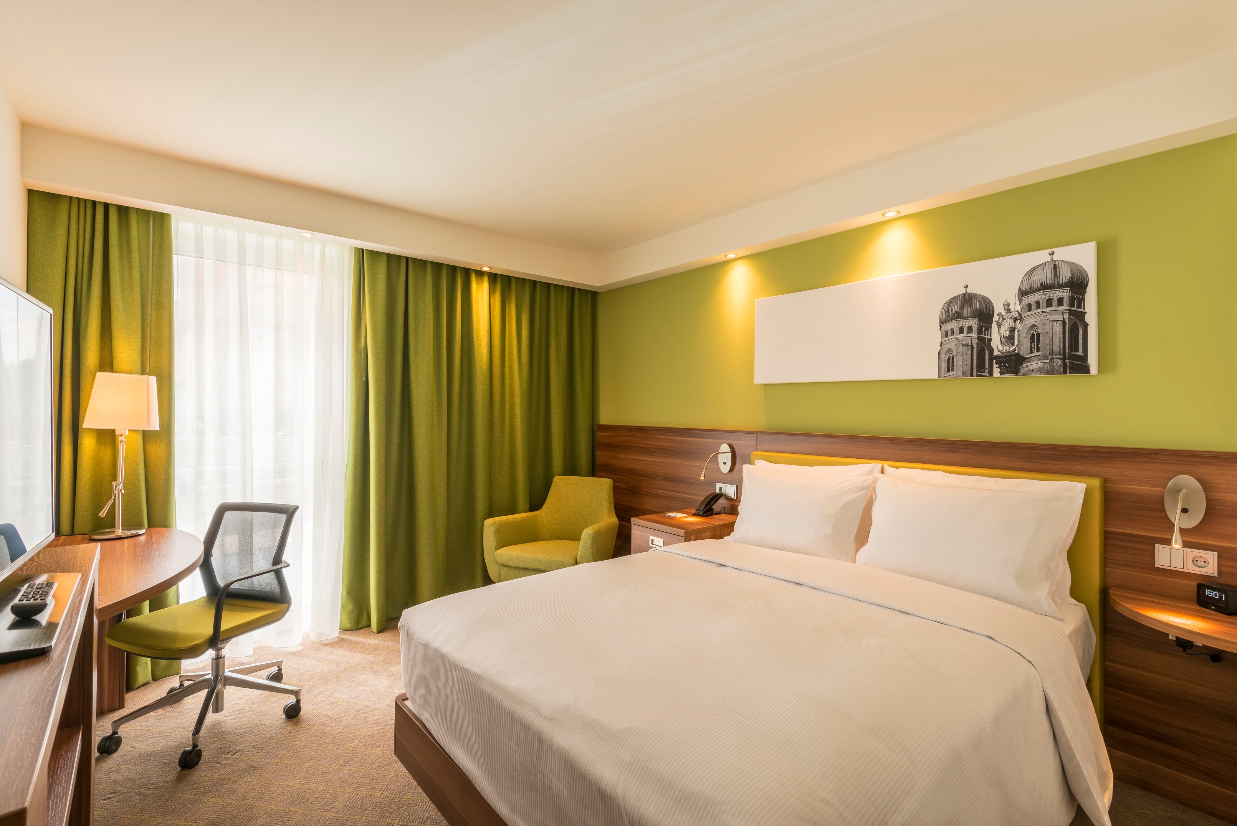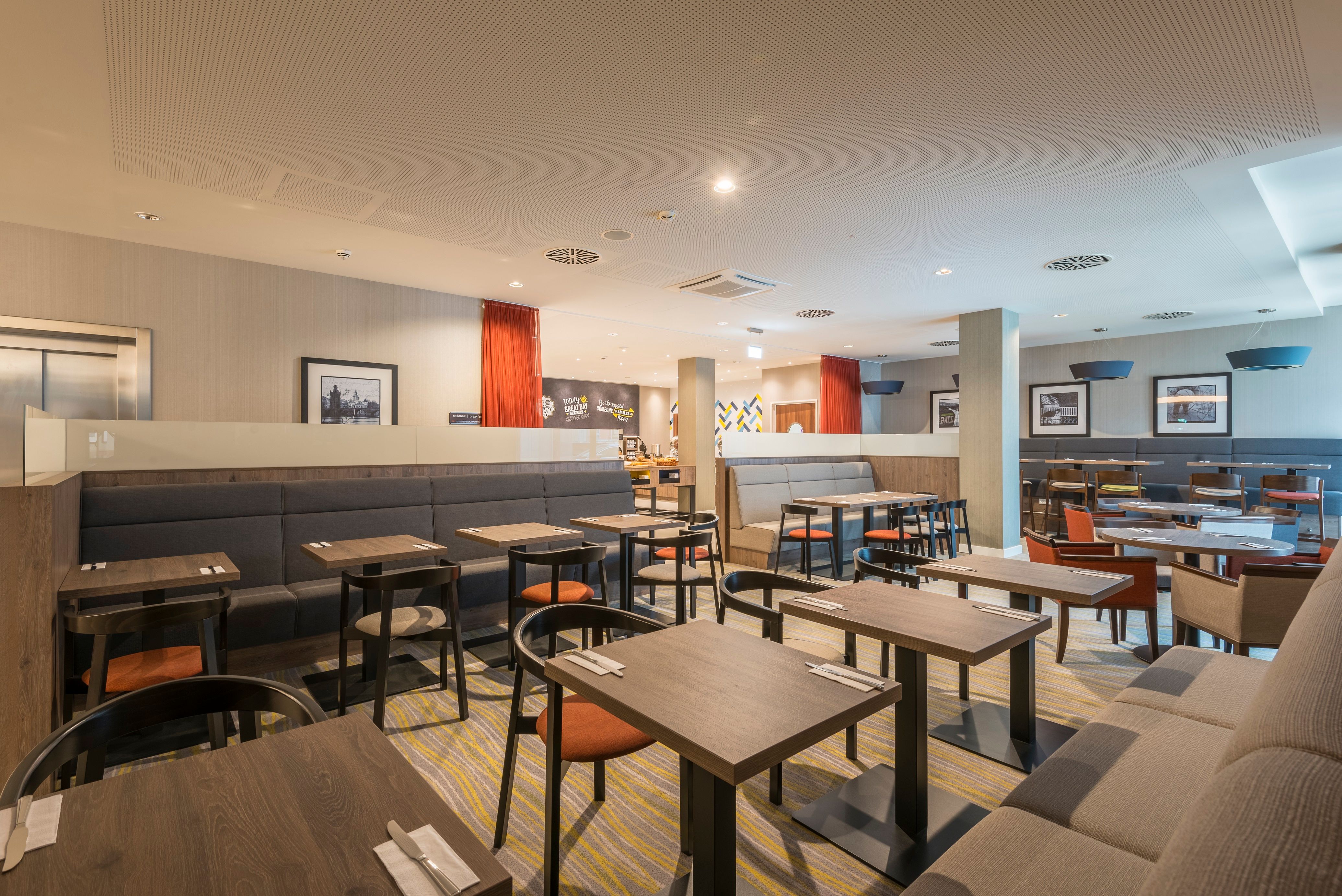 Freuen Sie sich auf unseren hoteleigenen rund um die Uhr geöffneten Fitnessraum, eine Gemeinschaftslounge, eine Bar und kostenfreies WLAN. Unsere Hotelzimmer sind alle mit 42 Zoll Flachbild-Fernseher, Telefon, Safe, Kaffee- & Tee- Zubereitungsmöglichkeit, Wecker, Bügeleisen/-brett, Fön und begehbarer Dusche ausgestattet. Genießen Sie auch das ausgesprochen reichhaltige Frühstücksbuffet des Hotels, z.B. mit frischen Waffeln um in einen erfolgreichen Tag zu starten.