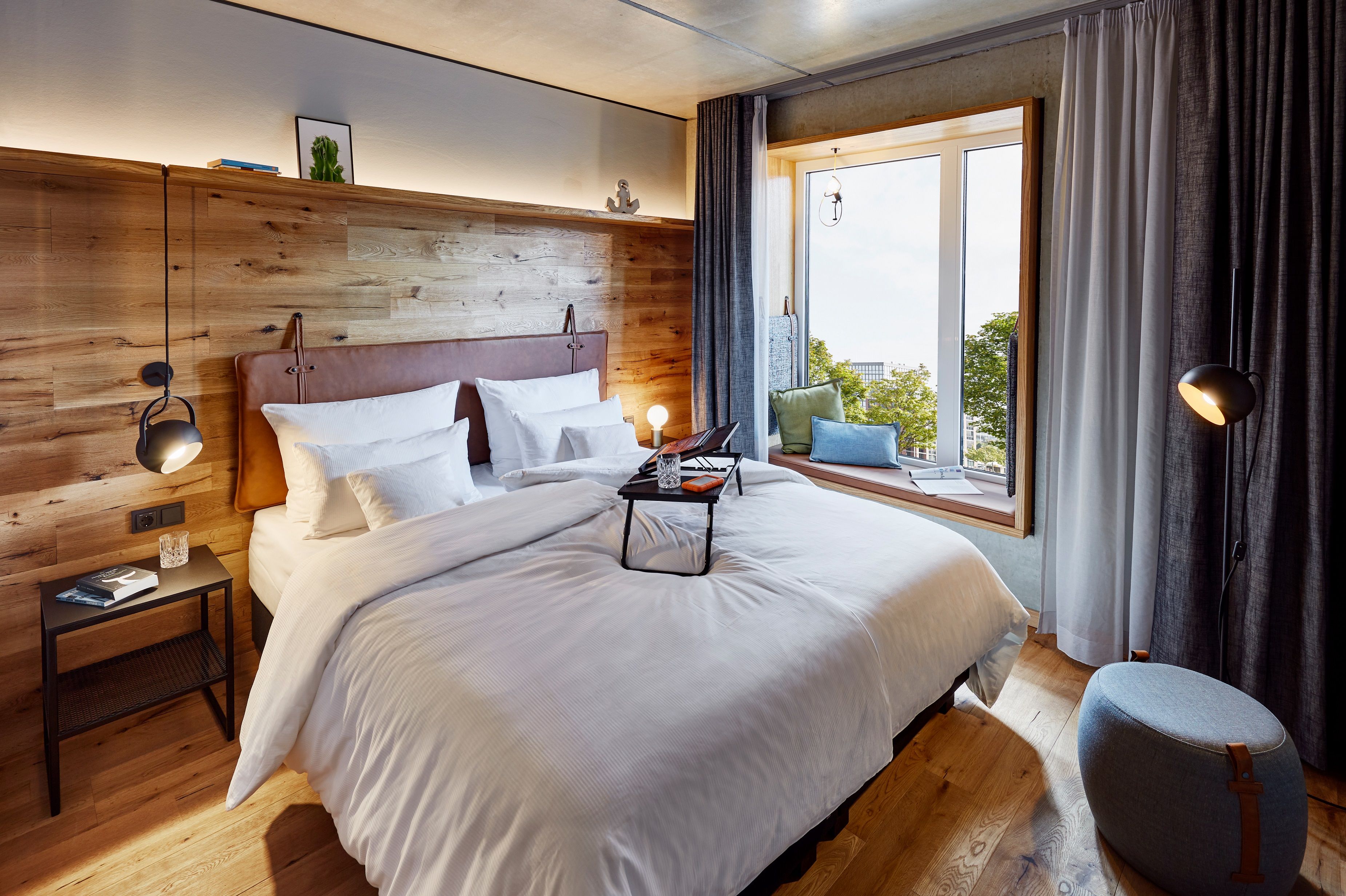 In 164 Zimmern träumt Ihr ganz maritim, in atmosphärisch-lässigem Werft-Style, von der großen weiten Welt. Helles Industriedesign mit starken Materialien, oder die harmonisch-gemütliche Verschmelzung von Beton, Stahl, Holz und Leder. Wundervoll komplettiert von feinen Stoffen, tollem Licht und herrlichem Grün.