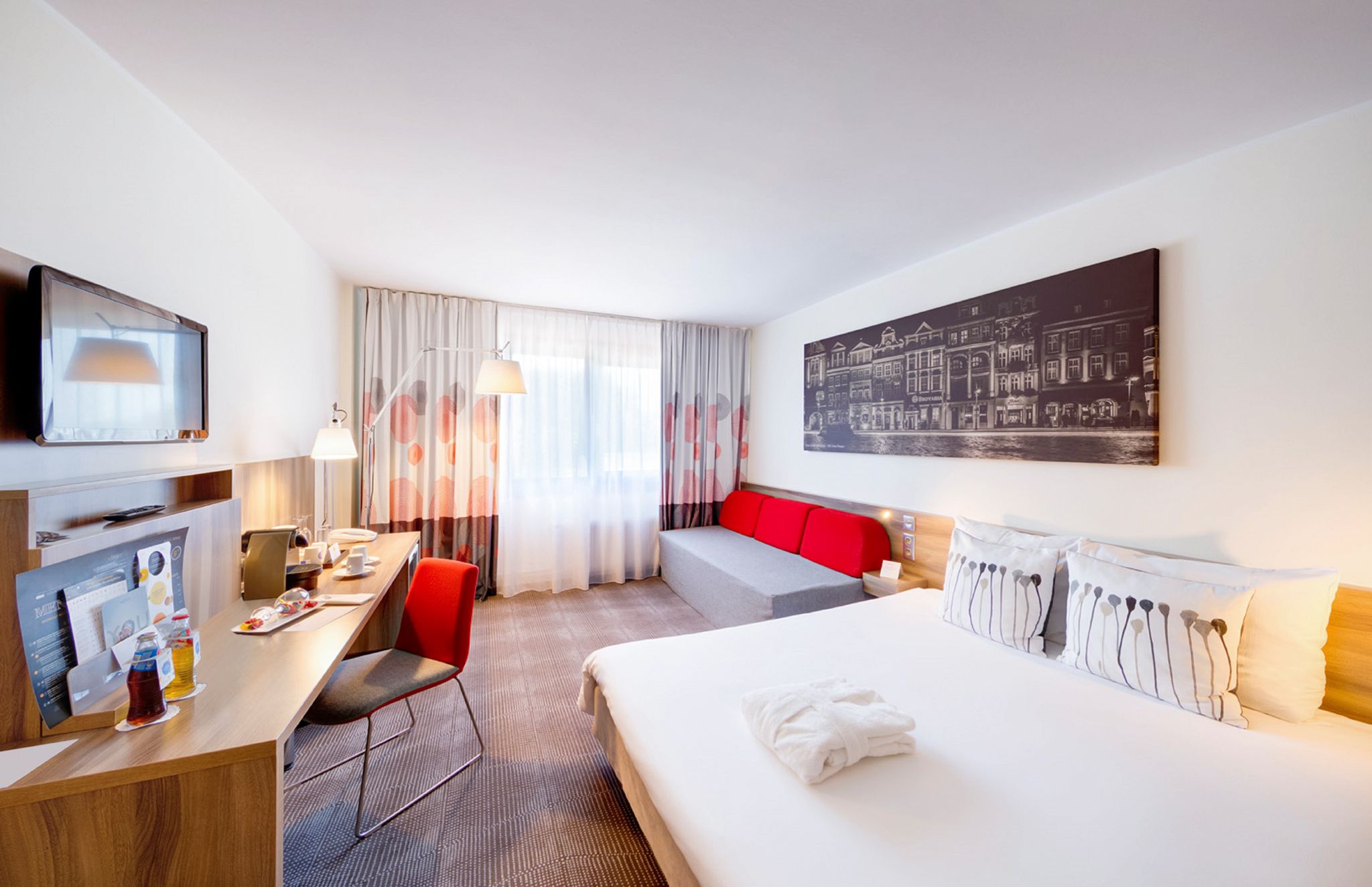Das 3-Sterne-Hotel empfängt Sie in grüner Lage nahe des Aquaparks Termy Maltanskie. Das Stadtzentrum von Posen erreichen Sie vom Novotel Poznan Malta in 30 Gehminuten oder nach einer kurzen Fahrt mit der Straßenbahn.