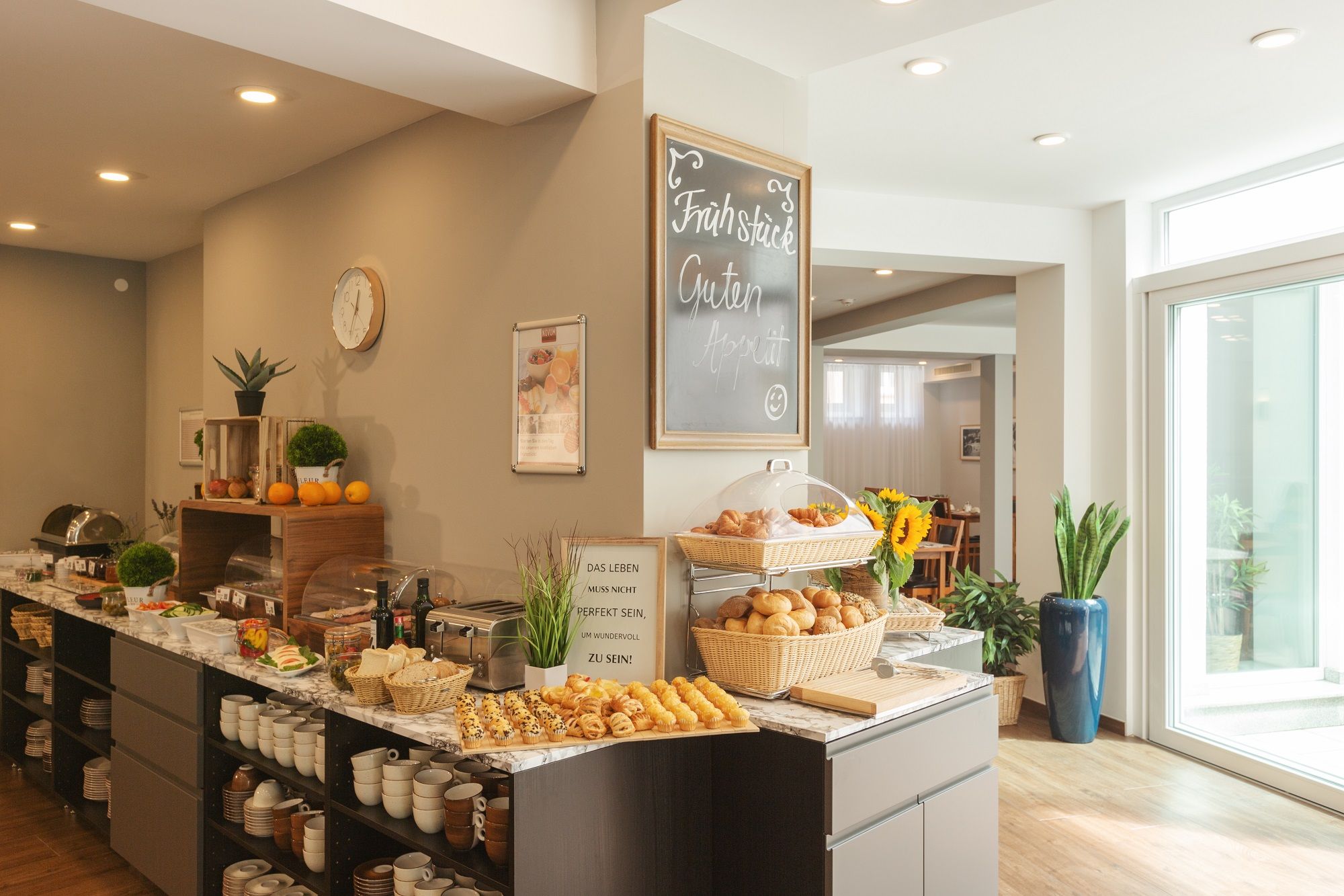 Täglich wird ein abwechslungsreiches Frühstücksbuffet für Sie aufbereitet. WLAN nutzen Sie im gesamten Hotel kostenfrei. Wenn Sie Fragen oder Anregungen haben, wenden Sie sich gern zu jeder Zeit an die Mitarbeitenden der Rezeption - diese ist rund um die Uhr für Sie besetzt.