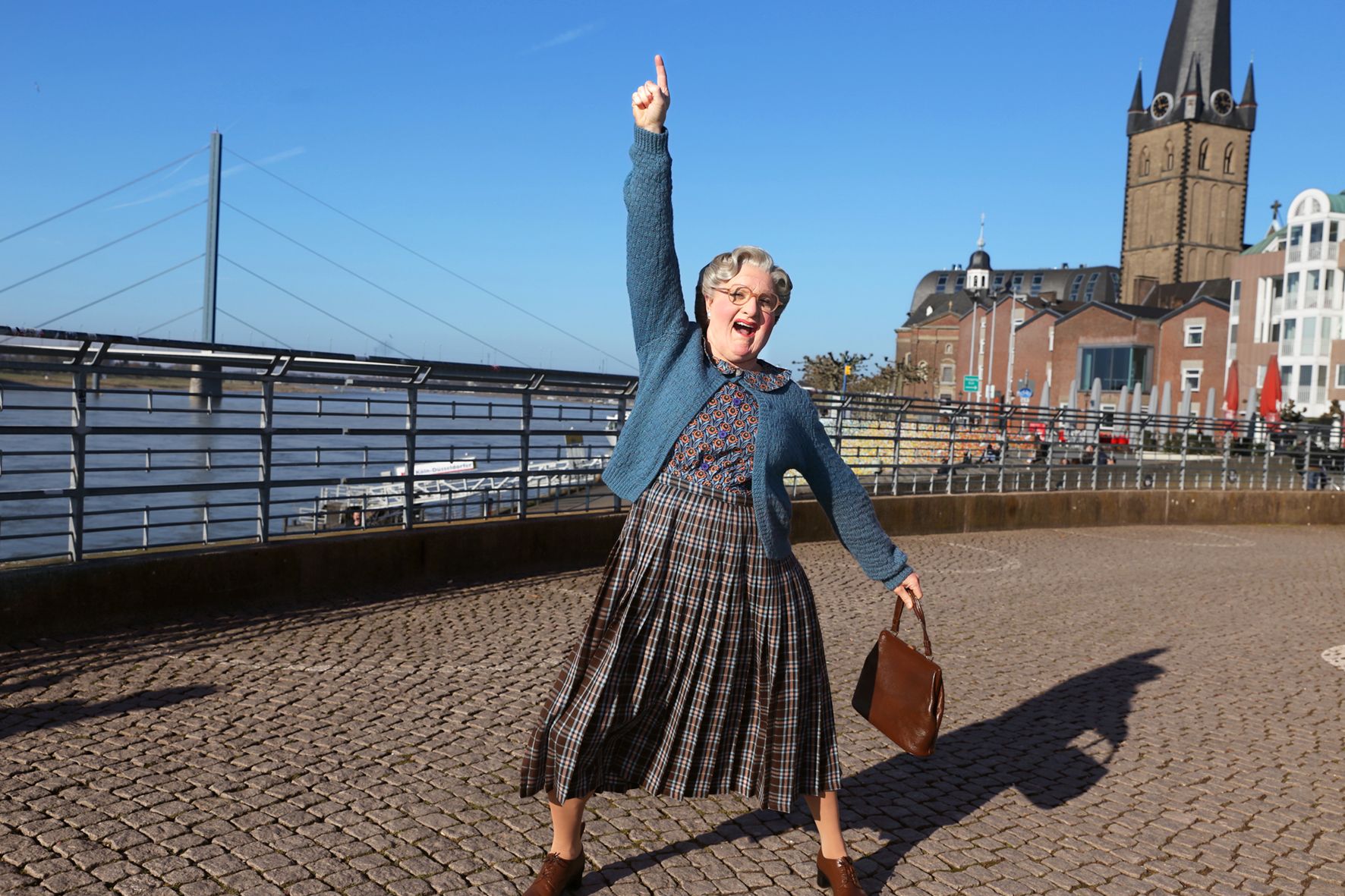 Sie tanzt mit dem Staubsauger Tango, löscht ihren ausgestopften Büstenhalter, der am Herd Feuer fängt, mit Topfdeckeln. Sie spielt mit den Kindern auf dem Besen E-Gitarre und klatscht sich, um nicht enttarnt zu werden, eine Torte ins Gesicht. Von wem hier die Rede ist? Von MRS. DOUBTFIRE natürlich!
