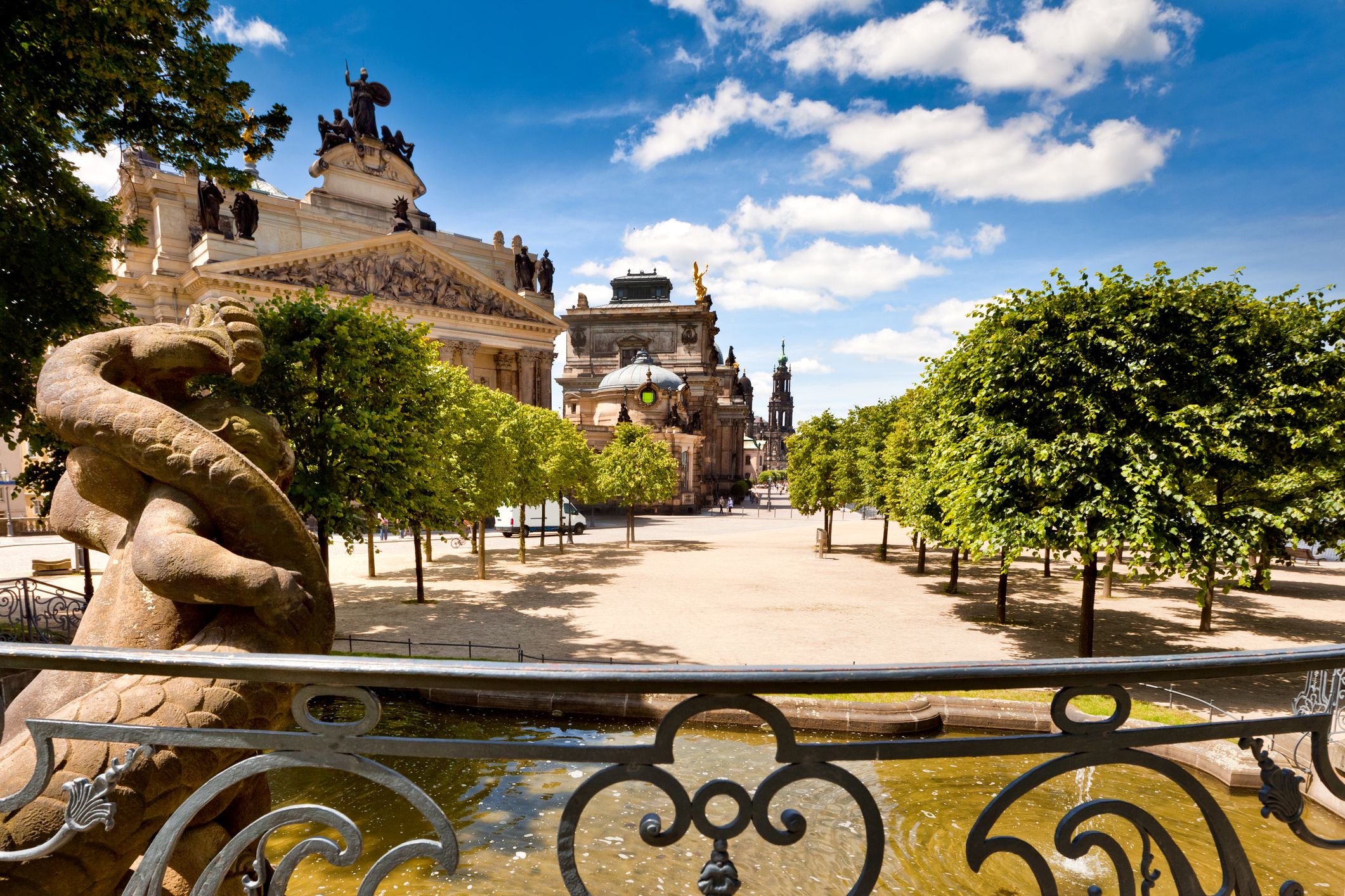 Besuchen Sie während einer Kurzreise mit der Bahn die Kunst- und Kulturschätze in den Museen und Galerien auf der Brühlschen Terrasse Dresdens an der Elbe.
